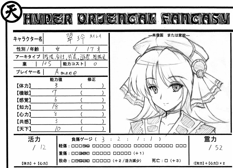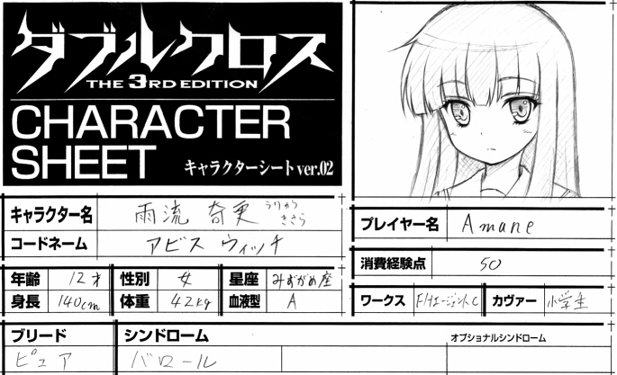 今回のセッションで、うちが作ったキャラはこれ↓