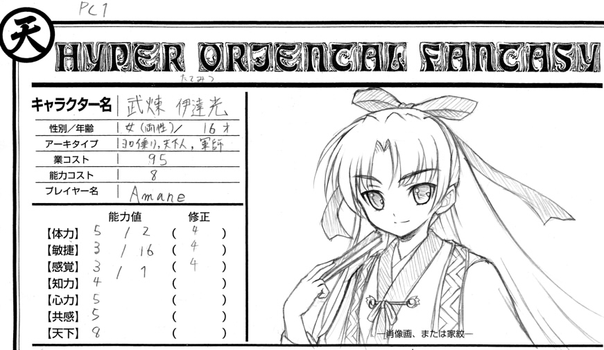 うちは念願の天羅・零PLですから、いつもは遠慮するPC1(主人公枠)を選びました。