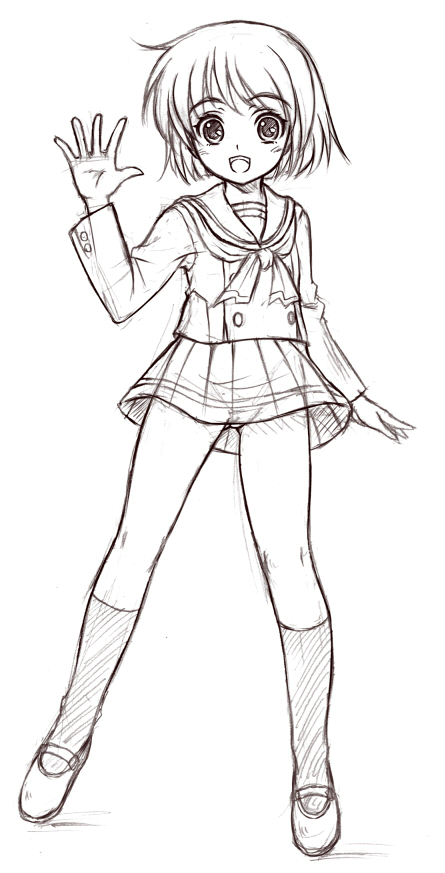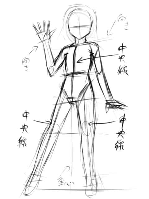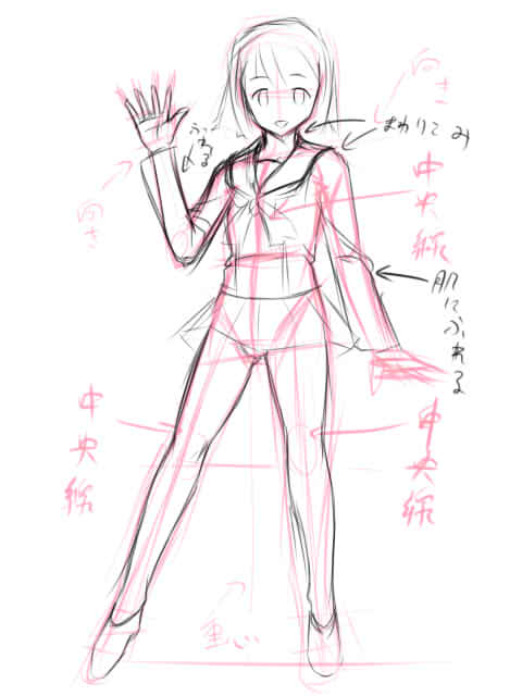服を着せたりしましょう。 アタリで引いていた中央線や向きのラインが