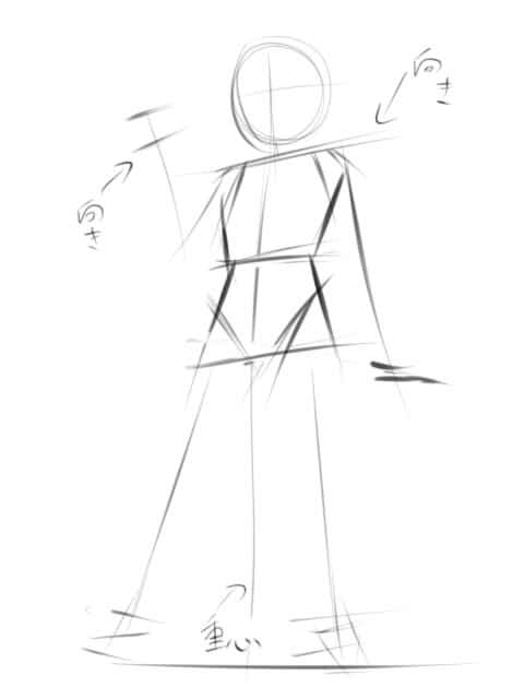 特に足や手などはこの向きを取っていないと、上手く描けません。