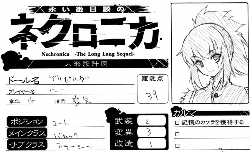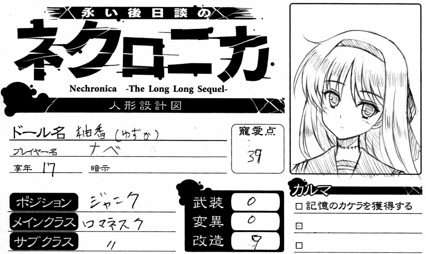 シナリオをやってもらって、シナリオ終了時のキャラクターを