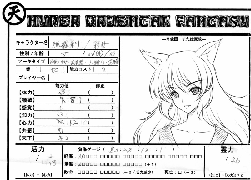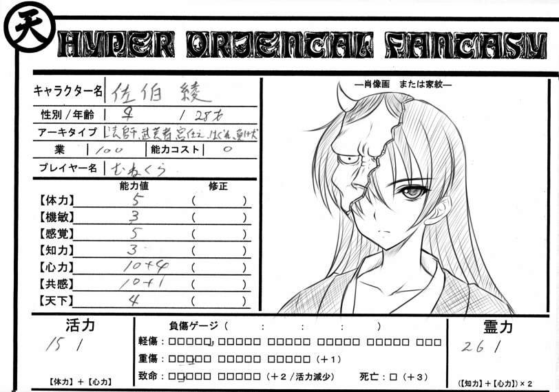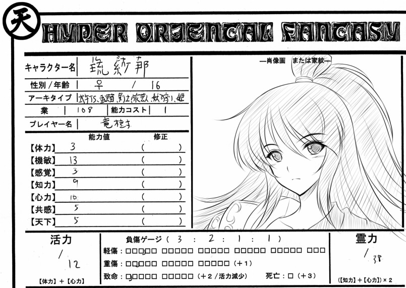 ▼PC1:竜樹さん (陰陽師、女剣士)