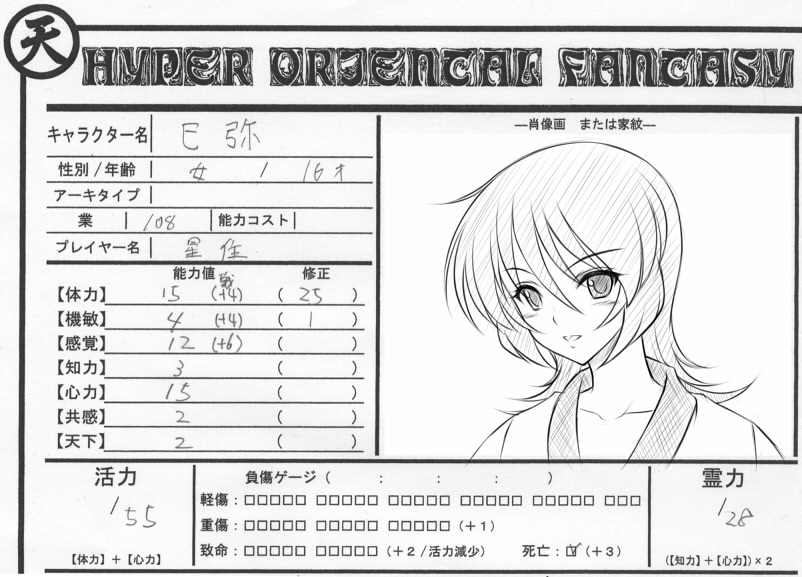 で、今回もセッション中にヒロインのイラスト描いたので載っけときます。