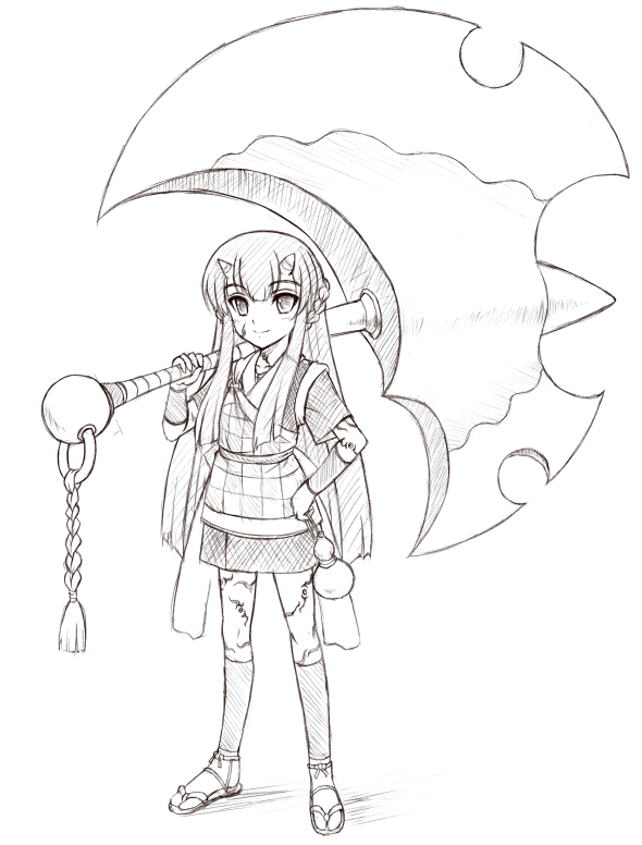 外見はこんな感じで、ヨロイ用の戦斧がメイン武器です。